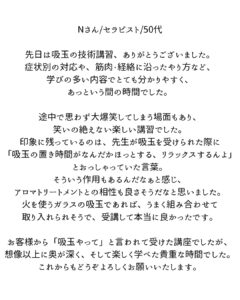 お客様からのリクエストがきっかけで、吸玉を学び始められました。