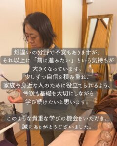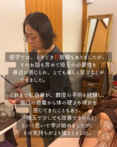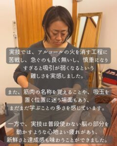 その気持ちを大切に、吸玉療法講座への参加を決められました。